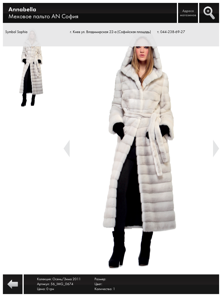 The app is an interactive catalog of the clothing presented in nine Symbol offline stores throughout Ukraine.